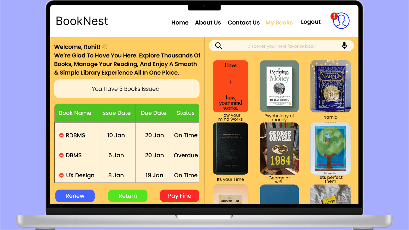 Create a digital system that helps students easily track their borrowed books, due dates, and fines.